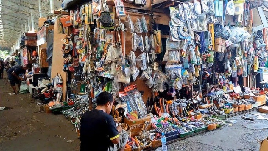 Pedagang menjual dagangannya di toko semi permanen, gubuk kayu dan di bawah jembatan. Kebanyakan barang yang ada di pasar ini memiliki kualitas yang lebih baik dibanding pasar-pasar lainnya dengan harga yang masih pada batas wajar. Tentunya para pembeli harus jeli membedakan mana barang asli dan barang seken saat berbelanja di pasar ini.