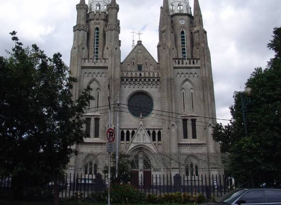 Bersebelahan dengan Masjid Istiqlal, kamu bisa menemukan bangunan bersejarah lainnya yaitu Gereja Katedral Jakarta. Gereja megah bergaya Neo-Gotik yang memiliki tinggi tak kurang dari 60 meter ini didirikan pada 1891 dan diresmikan pada 21 April 1901 dengan nama “De Kerk van Onze Lieve Vrowe ten Hemelopneming ” yang memiliki arti “Gereja Santa Maria Diangkat Ke Surga”.