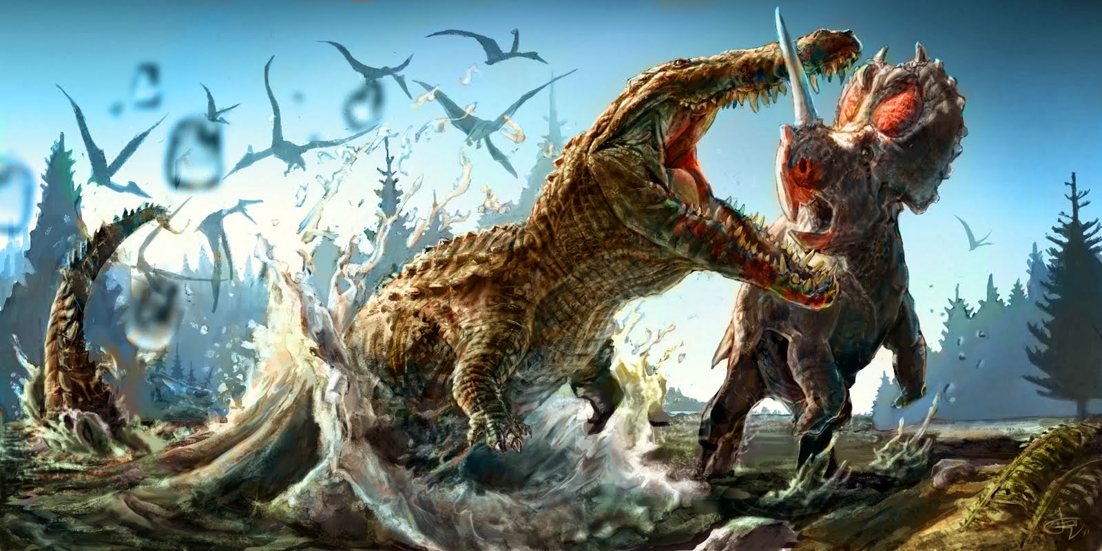 Dinosasurus sejenis Tyrannosaurus rex (T-rex) merasakan secara nyata bagaimana gigitan buaya purba raksasa yang hidup sekitar periode Kapur Akhir ini melalui sebuah bukti fosil.