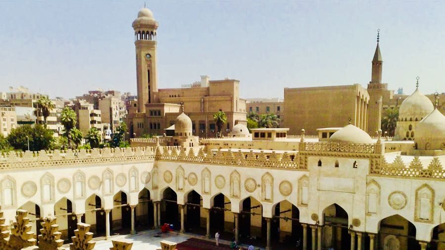 Universitas ini terhubung dengan masjid al-Azhar. Masjid al-Azhar didirikan pada 969 M. Sementara itu, universitas ini baru mulai dibuka pada bulan Ramadhan atau Oktober 975 M, ketika Ketua Mahkamah Agung, Abdul Hasan Ali bin al-Nu’man, mulai mengajar yurisprudensi yang diambil dari buku Al-Iktishar.