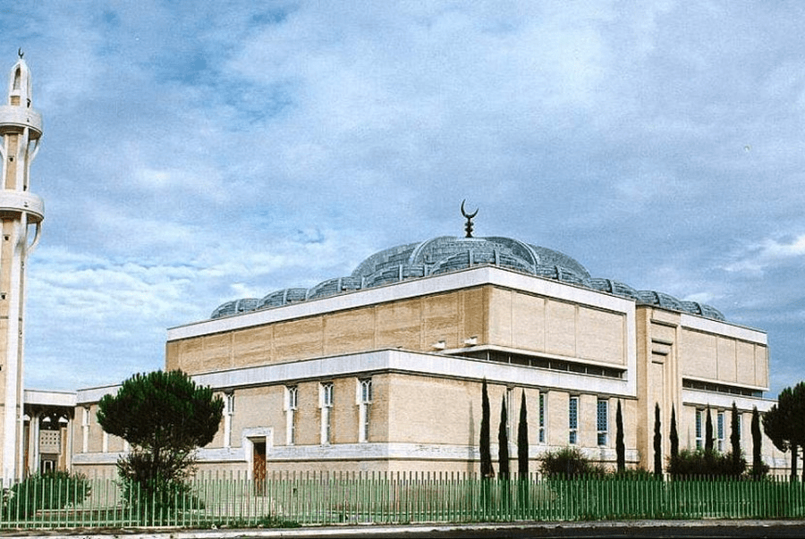 Masjidnya sendiri dapat menampung 12.000 orang, membuatnya menjadi masjid terbesar di Eropa. Arsitektur masjid ini merupakan gabungan dari arsitektur Islam, arsitektur Italia dan arsitektur lokal Romawi.
