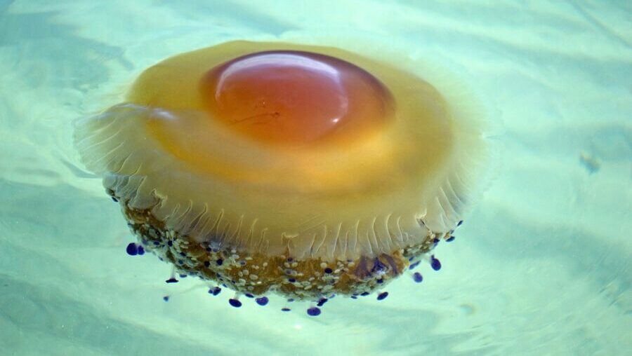 Kalau biasanya ubur-ubur dikenal memiliki bagian atas yang berbentuk tudungan halus, berbeda dengan hewan laut pemakan zooplankton ini yang mempunyai lonceng kuning besar menyerupai telur mata sapi goreng.
